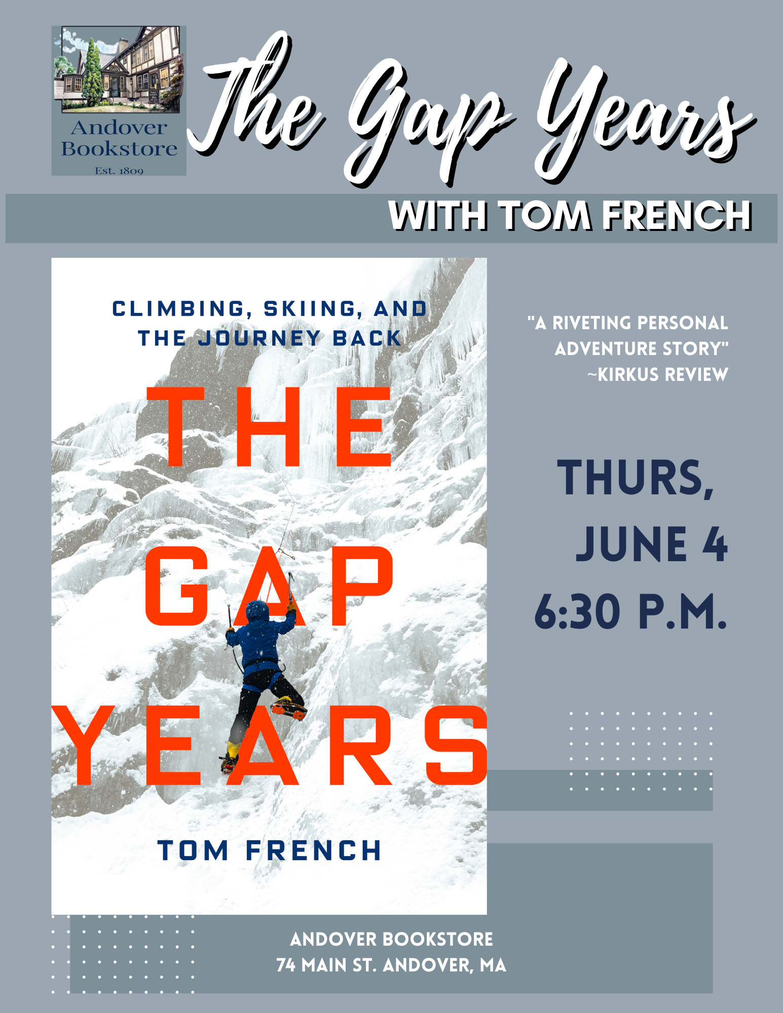 After retiring from a four-decade career in business, Tom French set out to rediscover the passions of his youth through mountaineering, adventure travel, and cross-country ski racing. What began as a planned gap year stretched into three years of rebuilding strength, racing ski marathons, and climbing some of the world’s highest mountains, including two expeditions to Mount Everest. More than a tale of endurance, The Gap Years is a reflection on joy and the search for meaning later in life.